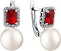 Фото «Серебряные серьги шарики De Fleur 28181RS1 с жемчугом, фианитами, нанорубинами»