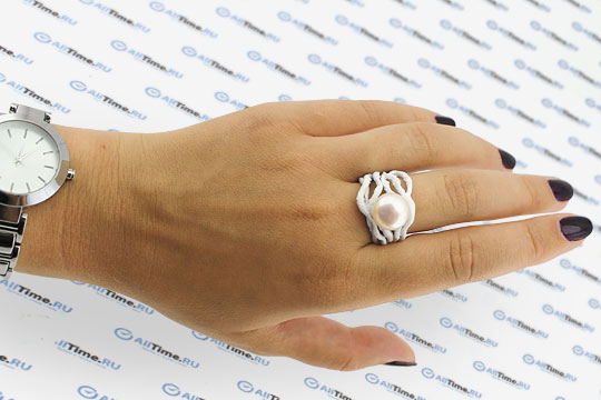 Фото «Серебряное кольцо De Fleur 51261Y1W с эмалью с жемчугом»