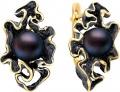 Фото «Серебряные серьги De Fleur 52238Y2B с эмалью, черным жемчугом»