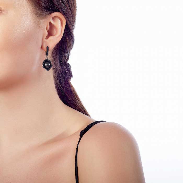 Фото «Серебряные серьги с подвесками De Fleur 52270S2B с жемчугом, эмалью»
