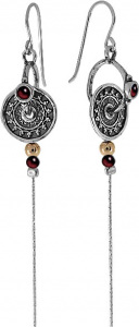 Фото «Серебряные длинные серьги круглые с подвесками DEN’O 01E603GR с гранатами»