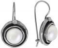 Серебряные серьги круглые DEN’O MVE1001PL с жемчугом, цирконом