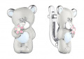 Детские серебряные серьги ''Мишки'' Dewi 901022340-dv с эмалью, фианитами