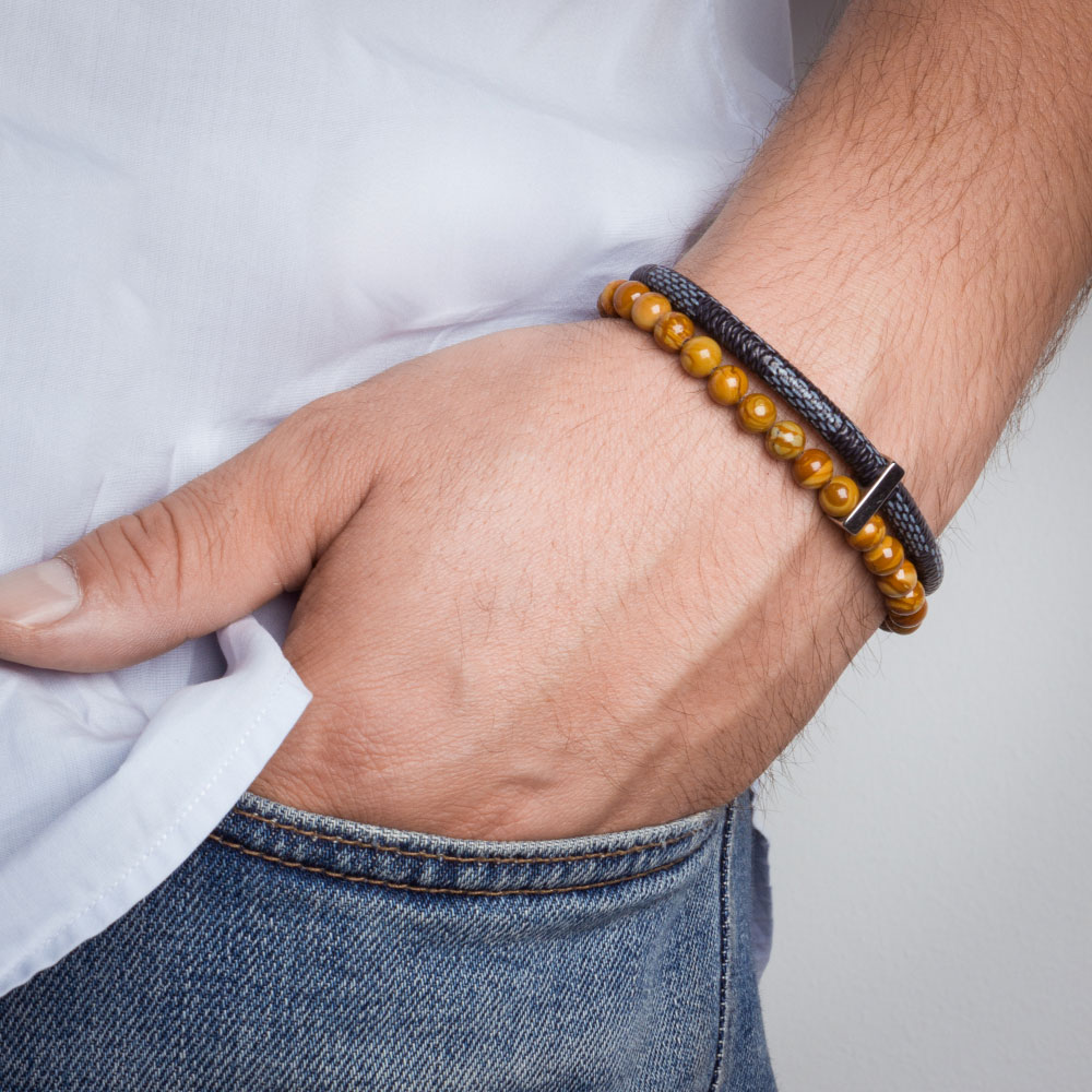 Мужской кожаный браслет DG Jewelry AS-BR051-Tg с тигровым глазом