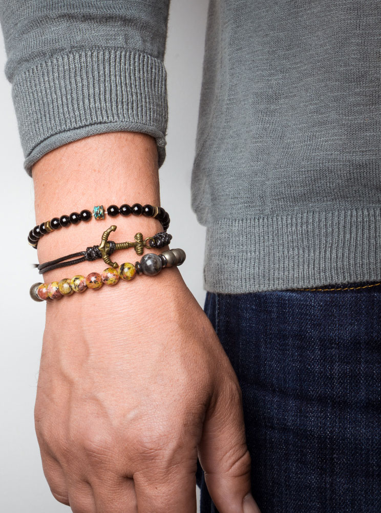 Фото «Мужской кожаный браслет DG Jewelry Om-BR013-mix с агатом»