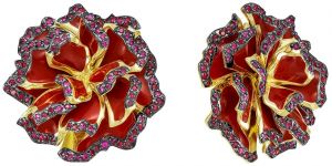 - желтое золото, эмаль, рубин, вес: 10,88г.