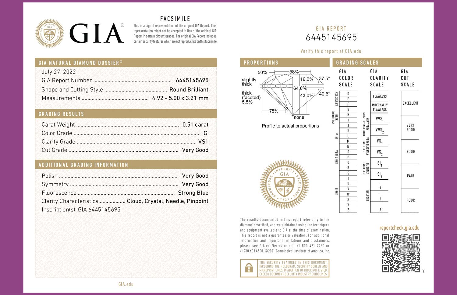 - бриллиант в 57 граней - 0,51К, чистота камня G/VS1 (цвет, качество), бриллиант - 36шт. в 57 граней - 0,15К, чистота камня 3/6 (цвет, качество)