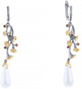 Фото «Серебряные длинные серьги JV E01645-SR-GR-WM-BJ с органическим жемчугом, гранатами»