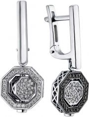 Двухсторонние серьги из белого золота с подвесками ERA JEWELLERY 02-02722-03-040-07-04 с черными бриллиантами, бриллиантами