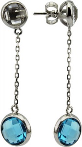 Фото «Серебряные длинные серьги Эстет 01S258037CLBLU с ювелирным стеклом»