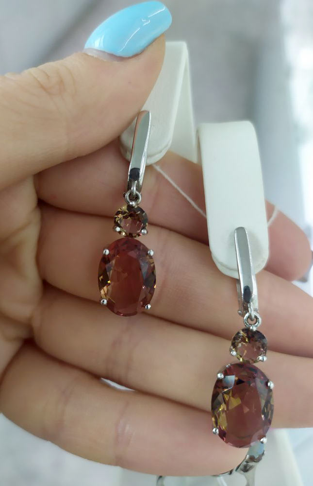 Фото «Серебряные серьги с подвесками Evora 633397 с султанитами»