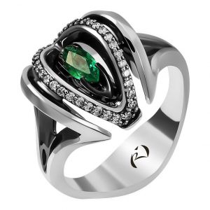 - белое золото, бриллиант, изумруд, вес: 7г.