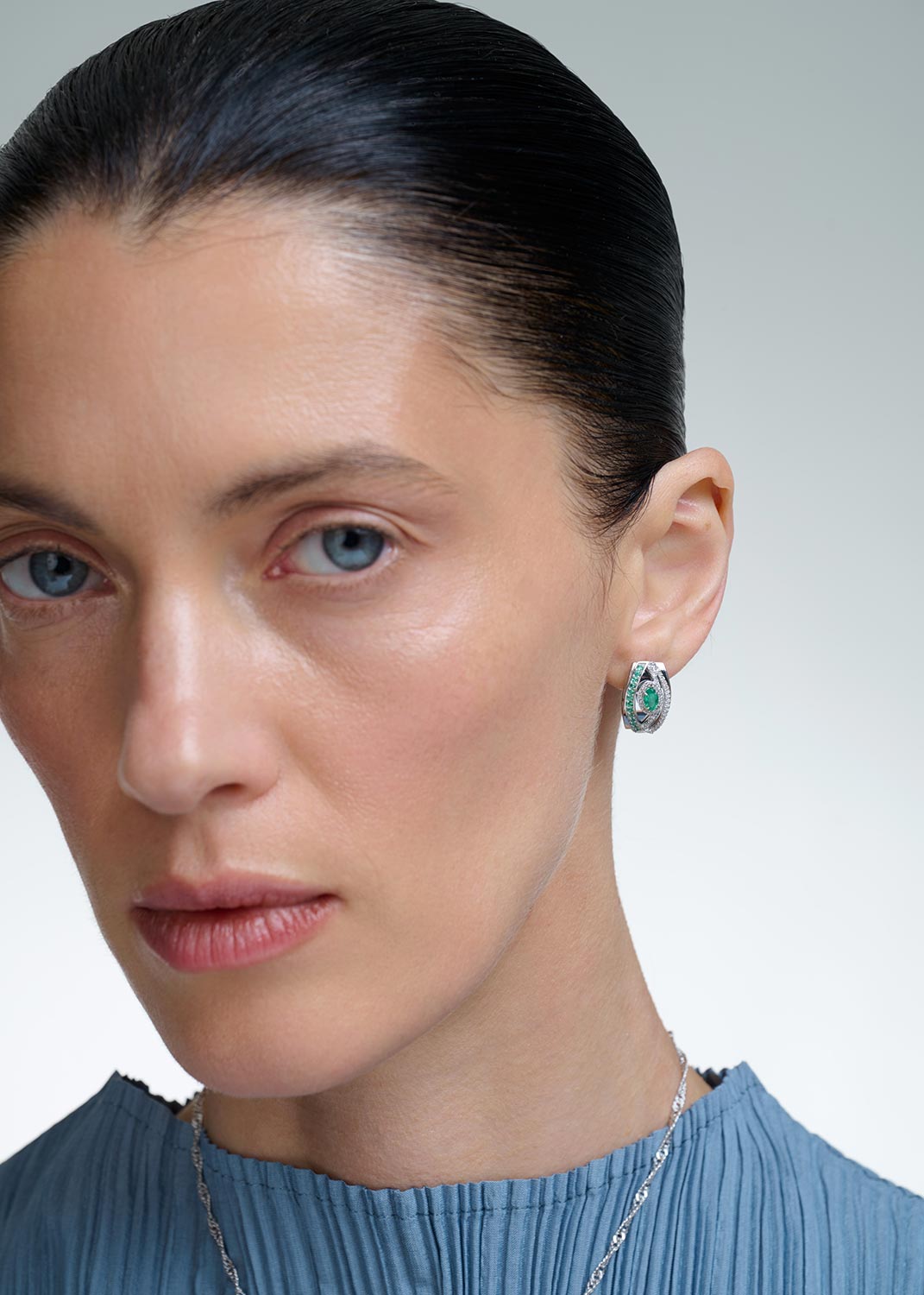 - белое золото, бриллиант, изумруд, вес: 1,9г.