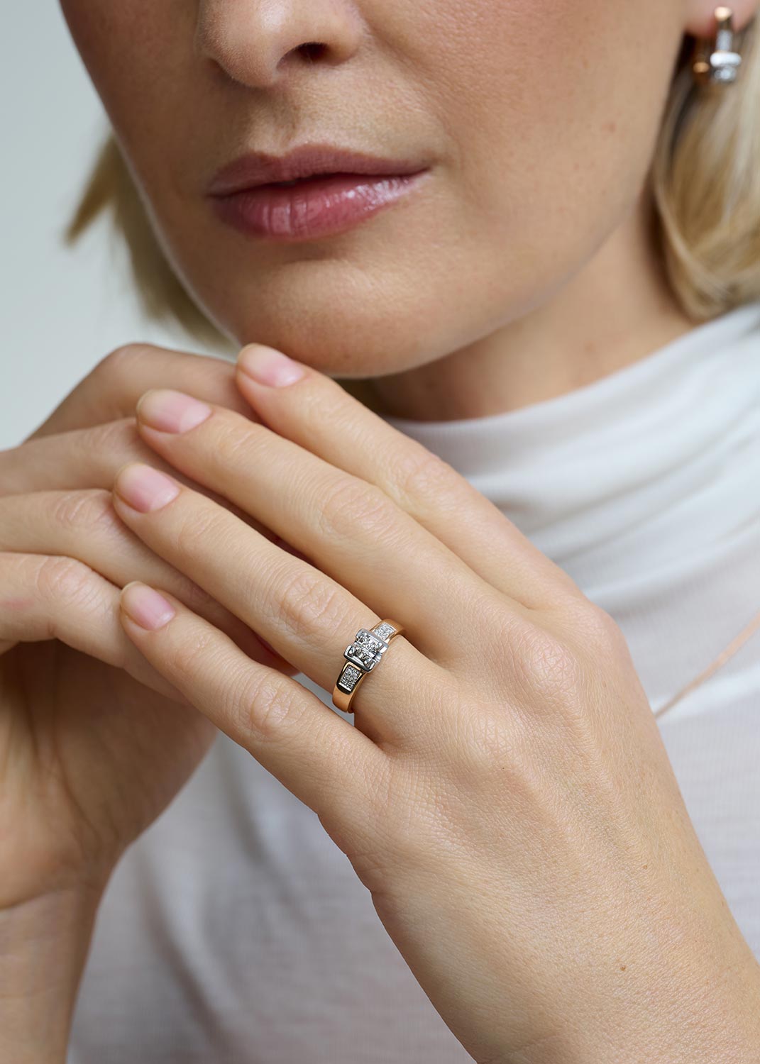 - красное золото, бриллиант, вес: для размера 17 - 1,49г.