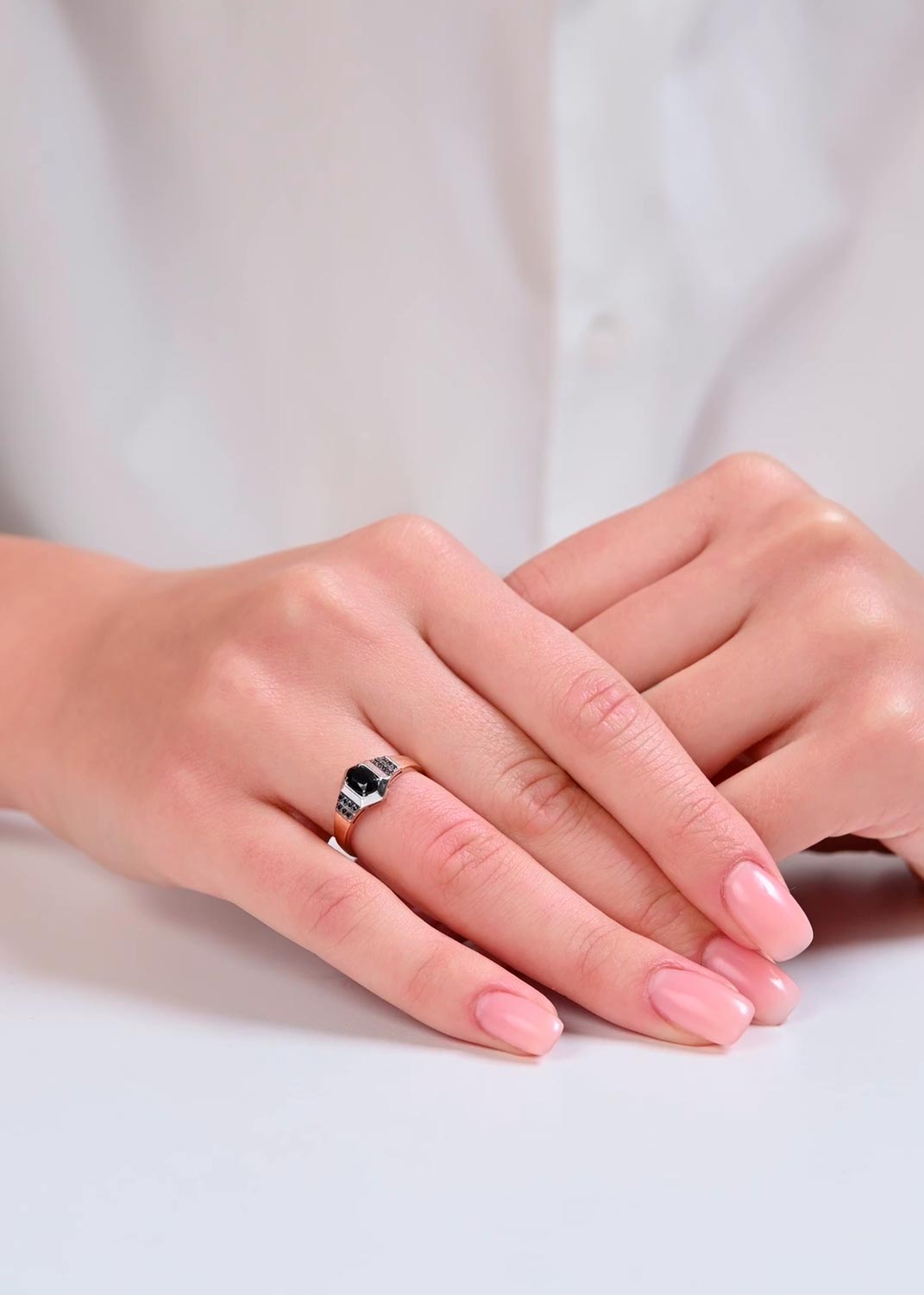 - красное золото, бриллиант, сапфир, вес: для размера 18,5 - 1,83г.