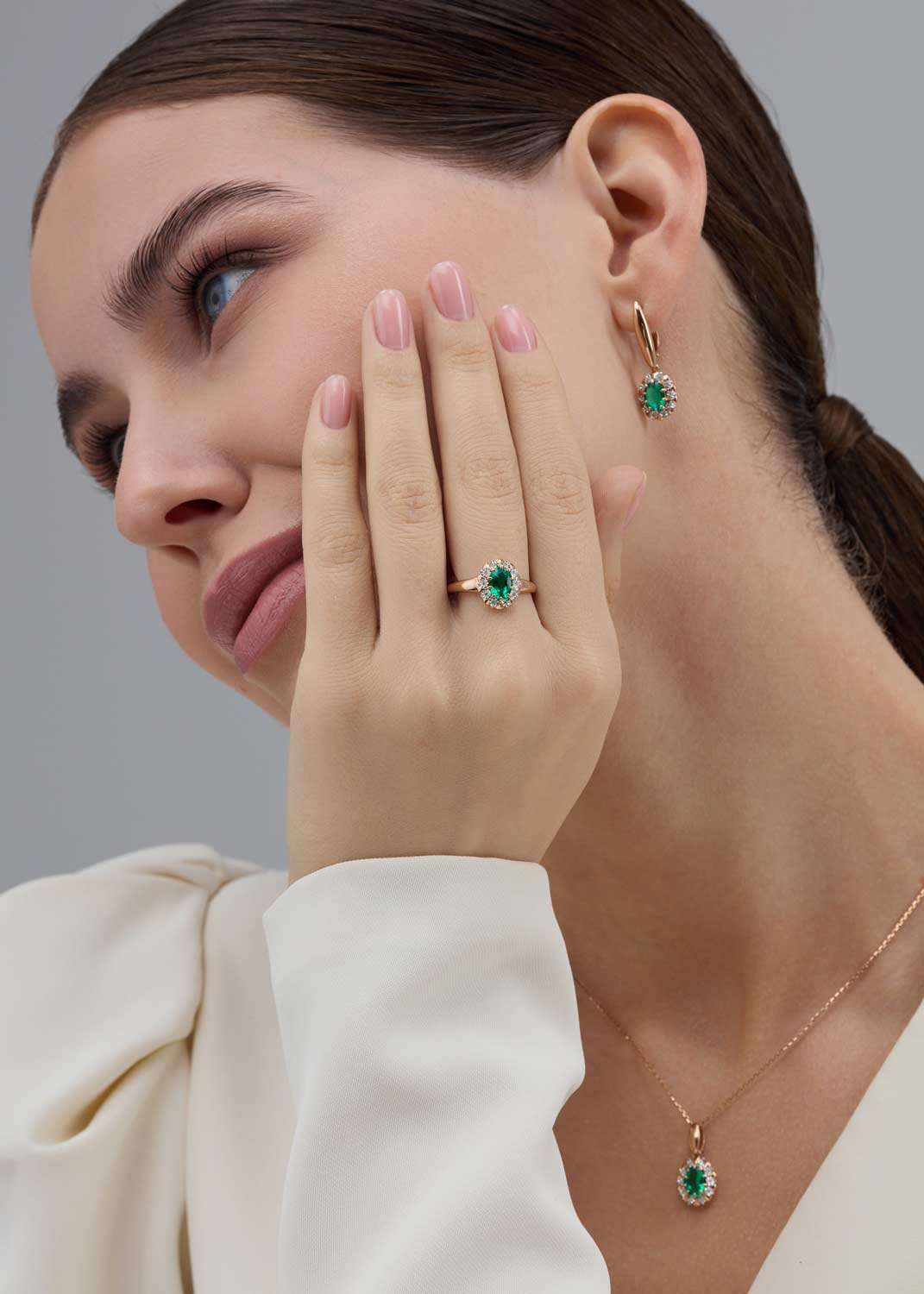 - красное золото, изумруд, вес: для размера 17 - 1,57г.