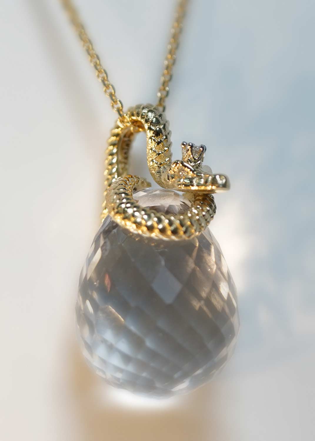 - желтое золото, кварц, бриллиант, вес: 5,36г.