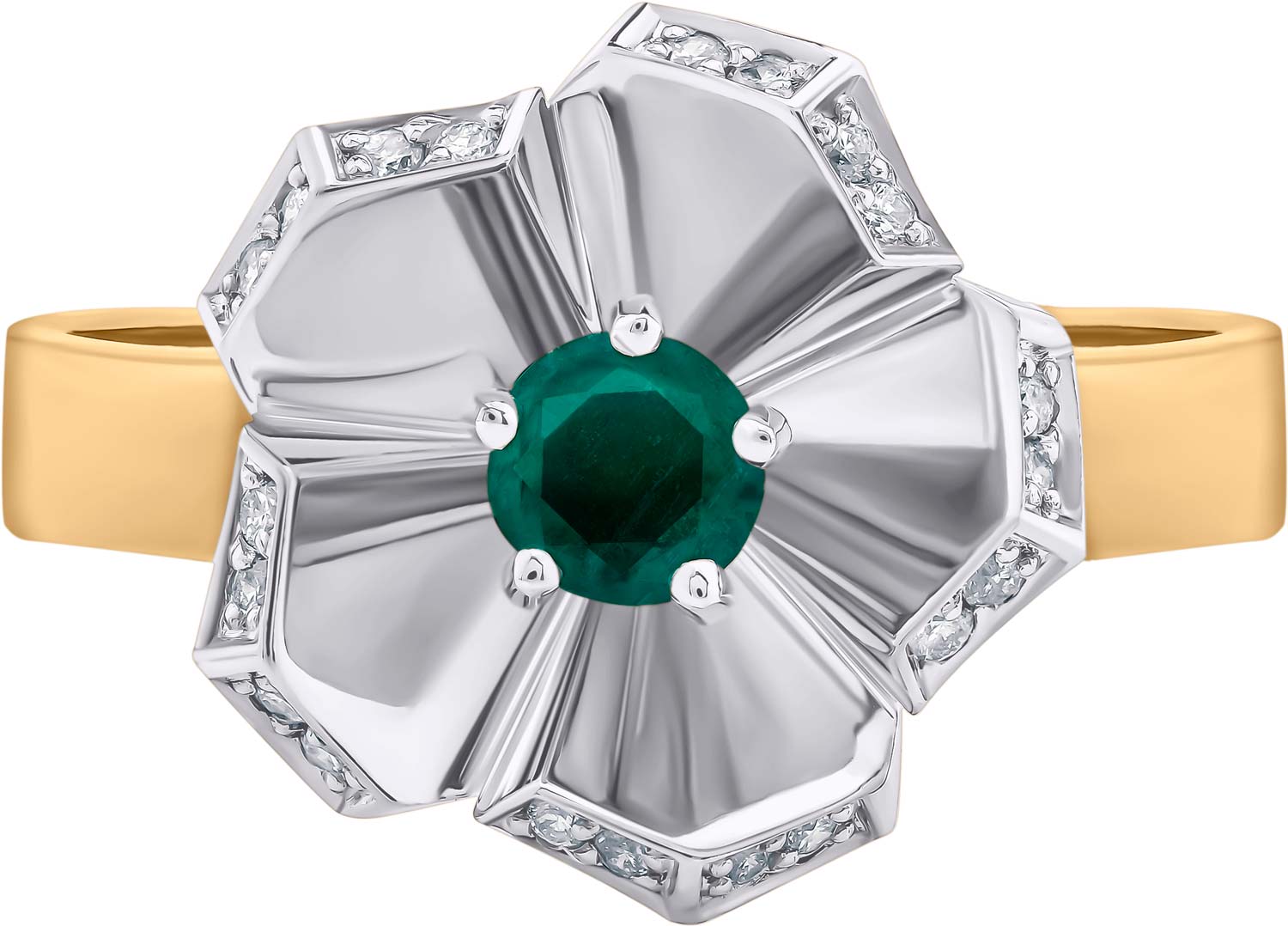 - желтое золото, изумруд, бриллиант, вес: 4,55г.