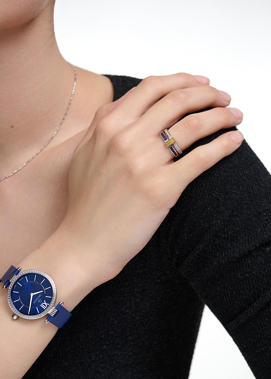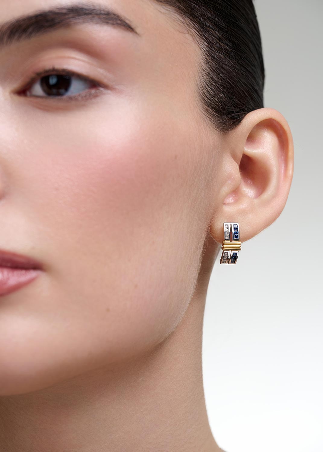 - белое золото, желтое золото, бриллиант, сапфир