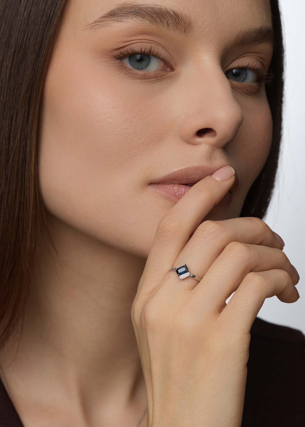 - белое золото, бриллиант, сапфир, вес: для размера 17,5 - 1,28г.