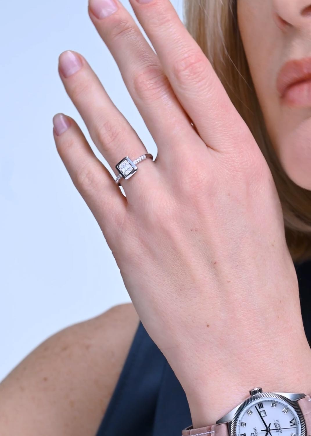 - белое золото, цветные бриллианты, бриллиант, вес: для размера 17,5 - 1,27г.