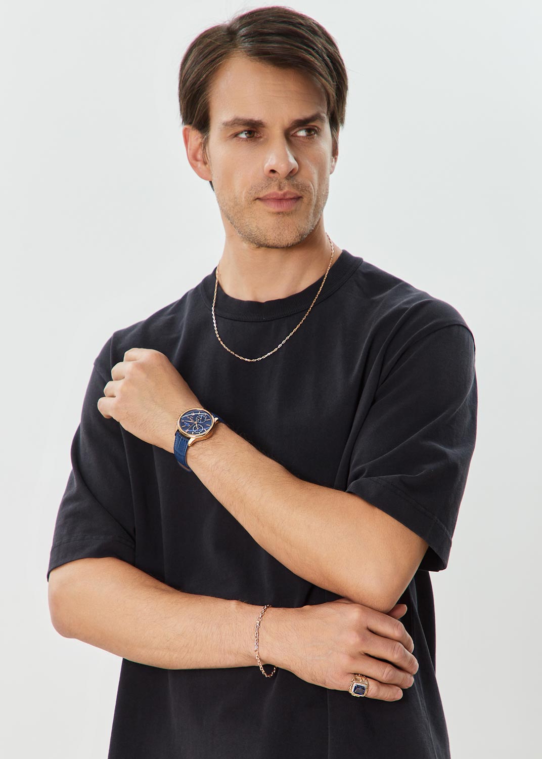 - серебро, розовое золото, кевлар, сталь, шпинель, вес: 10,36г.