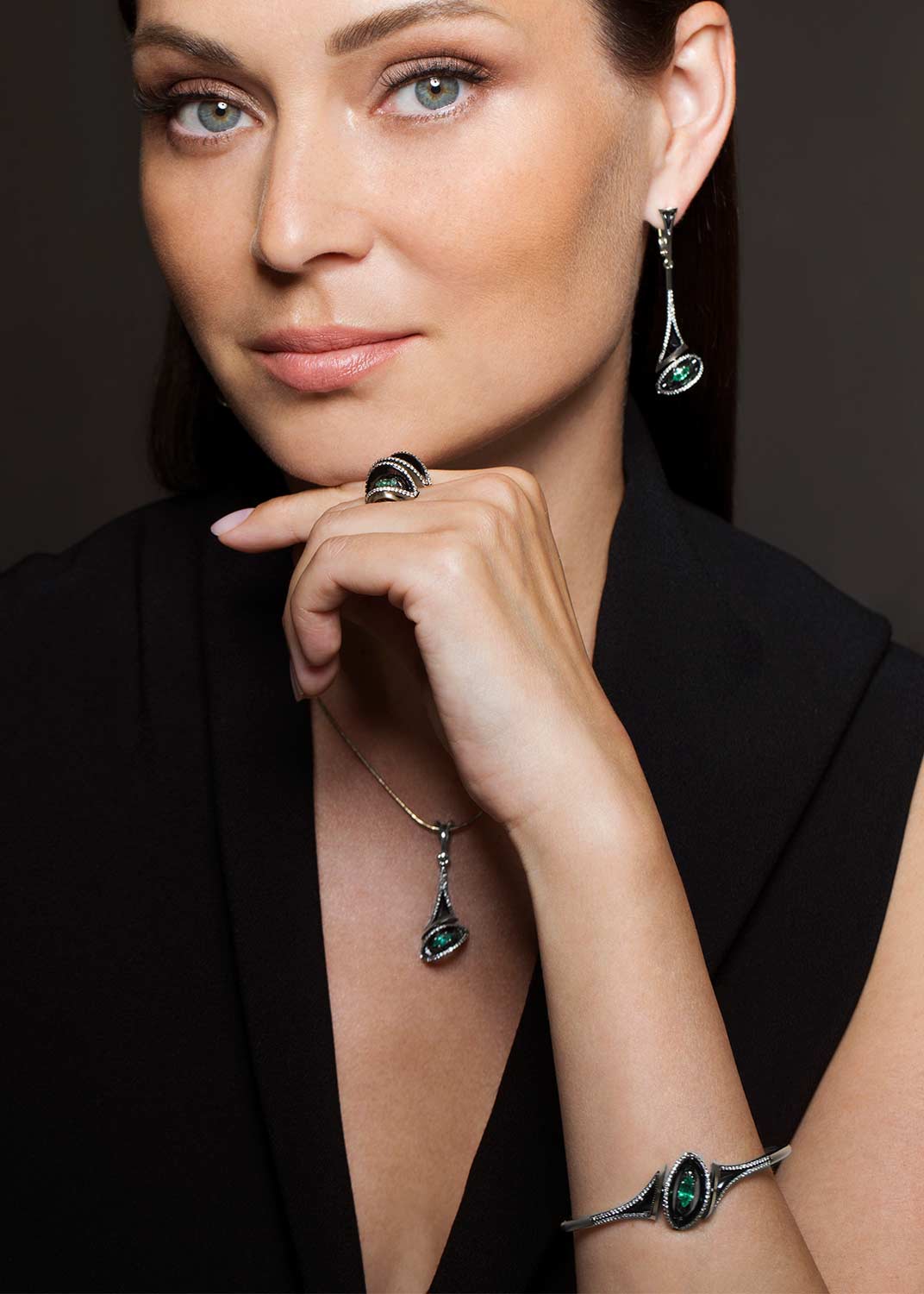 - белое золото, бриллиант, изумруд, вес: 16,6г.