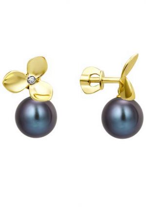 - желтое золото, бриллиант, натуральный жемчуг, жемчуг, вес: 3,56г.