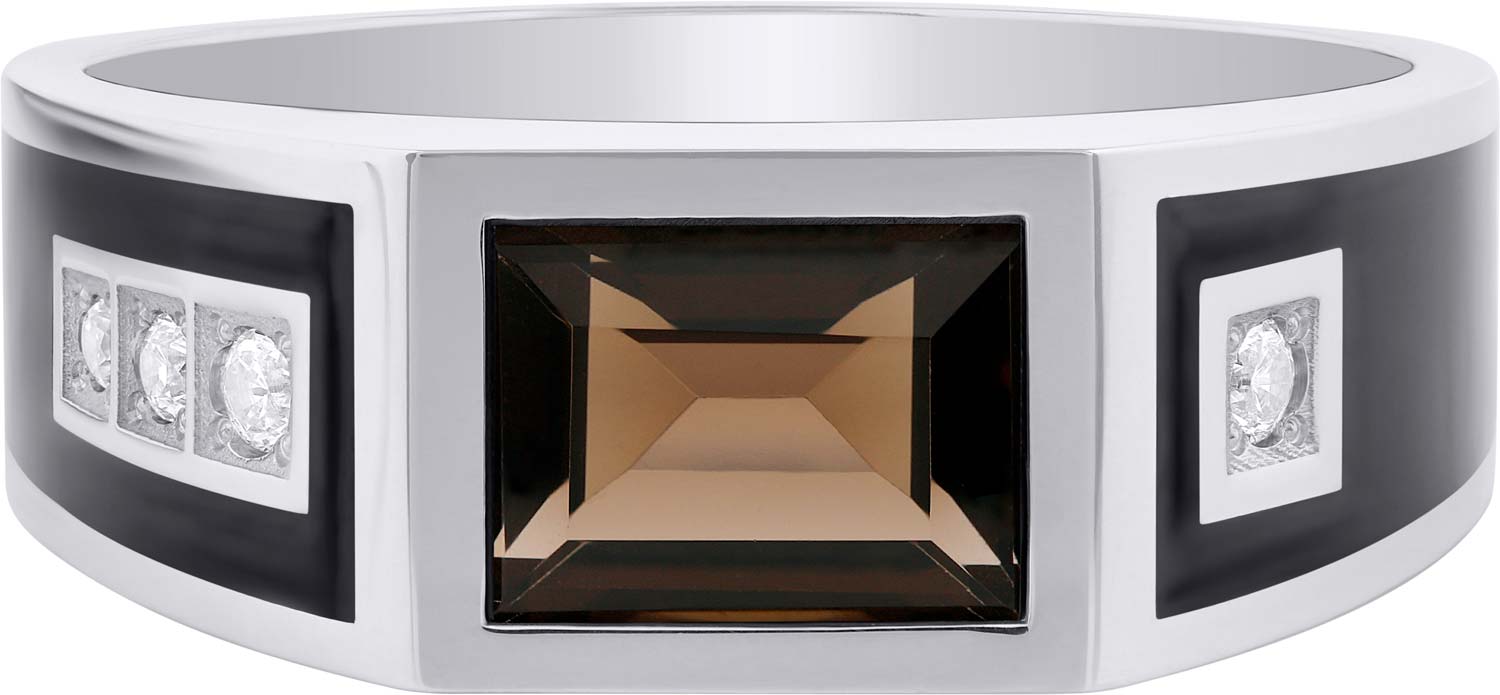 Мужская серебряная печатка перстень GRAF КОЛЬЦОВ PN-K1RT/S с дымчатым кварцем, фианитами