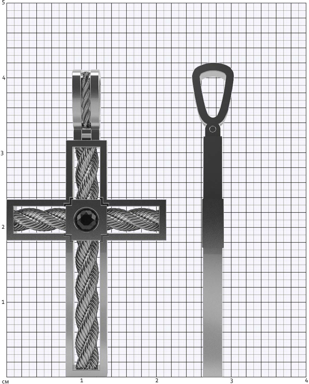 Фото «Мужской декоративный крестик из белого золота GRAF КОЛЬЦОВ PN-KR107/B с черным бриллиантом»