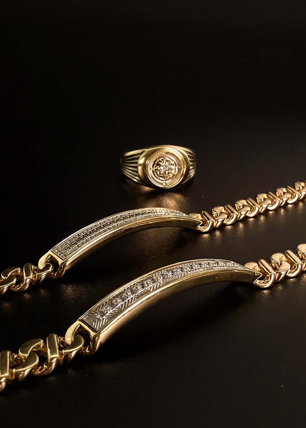 Фото «Мужская золотая печатка ''Роза ветров'' Grant 9201149-gr с бриллиантом»