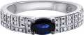- сапфир - 0,59К, чистота камня 2/2 (цвет, качество), бриллиант в 57 граней - 28шт. - 0,128К, чистота камня 4/5А (цвет, качество)