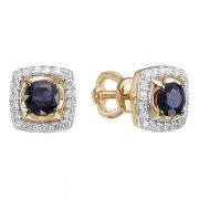 Золотые серьги-пусеты Империал S01570-122 c бриллиантом, сапфиром