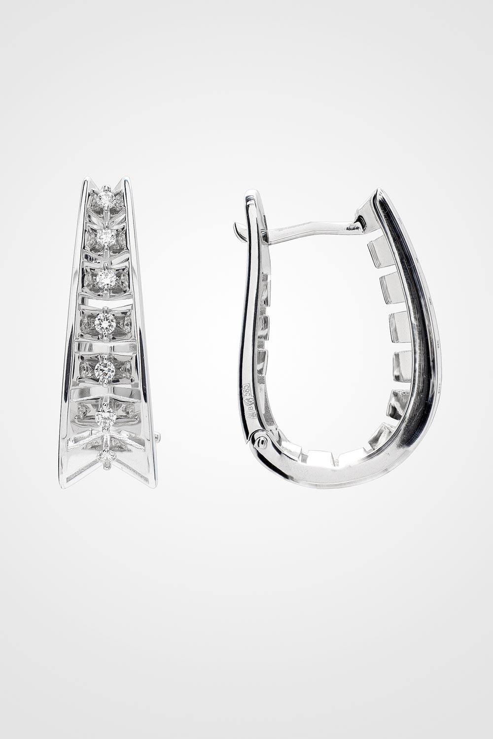 Необычные серьги из белого золота 585 пробы со сверкающими бриллиантами станут изысканным завершением любого вашего образа. Английский вид застежки.