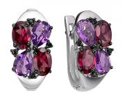 Фото «Серебряные серьги Империал S1058/Ag-607/1/9/14 с аметистами, родолитами, шпинелью»