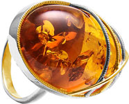 Серебряное открытое кольцо Янтарная Волна 720030-jav c янтарем