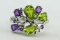 Фото «Серебряное кольцо Ювелирные Традиции K620-3466M44 с хризолитами, аметистами»
