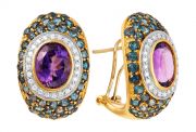 Фото «Золотые серьги JV E36016K-4-AM-LT-YG с Лондон топазами, аметистами, бриллиантами»