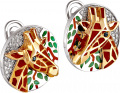 Фото «Серебряные серьги круглые ''Жираф'' Kabarovsky 12-002 с эмалью, черными фианитами, фианитами Swarovski»
