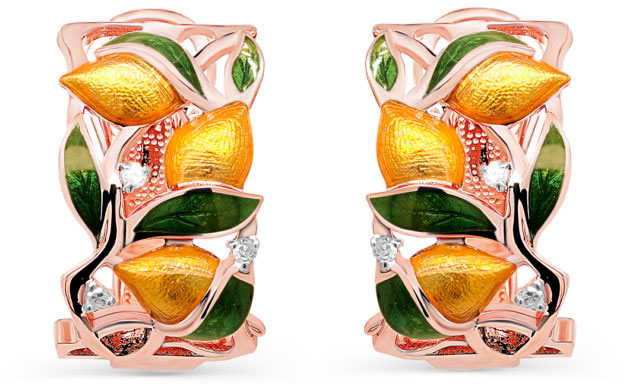 Золотые серьги Kabarovsky 12-01110-1001 с эмалью, бриллиантами