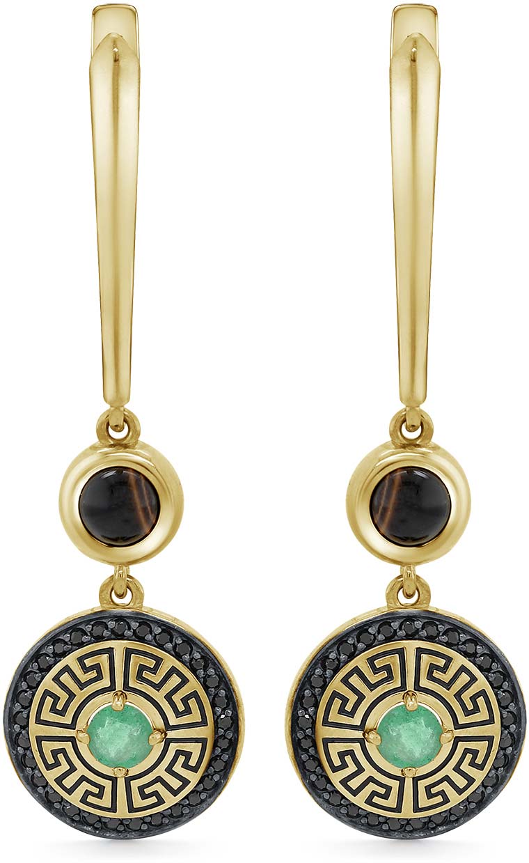 Серебряные серьги с подвесками Kabarovsky 12-706-1202 с эмалью, изумрудами