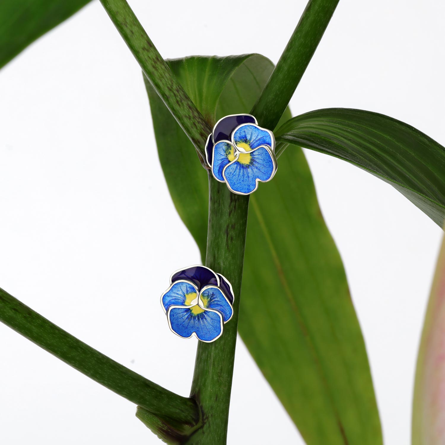 Фото «Серебряные серьги пусеты-гвоздики ''Анютины глазки'' Kabarovsky 2-027-0001 с эмалью»