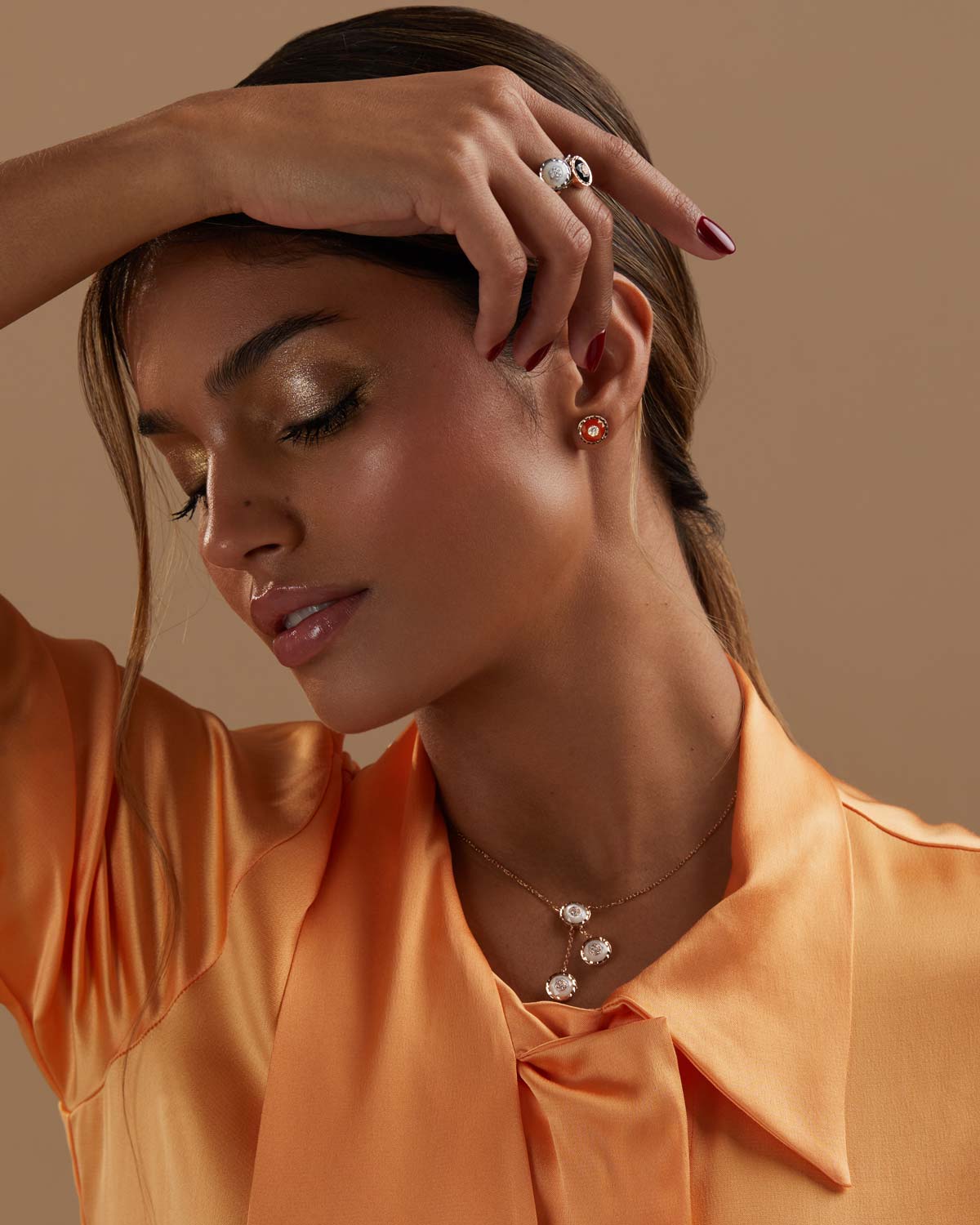 Фото «Золотые серьги пусеты-гвоздики Korloff 25516BO006/KO00031423 с искусственным кораллом, бриллиантами»