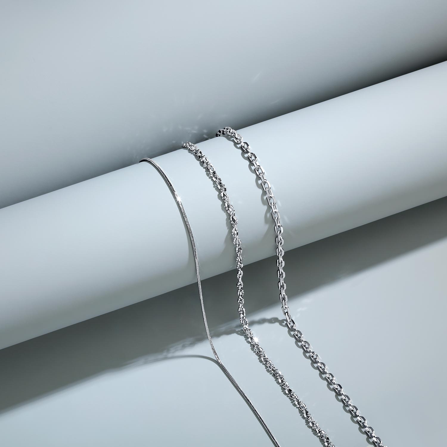 Фото «Цепочка на шею из белого золота Krastsvetmet NC-18-100-3-1-20 с плетением перлина»
