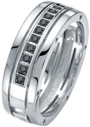 Мужское наборное кольцо из белого золота ЛЕТО 102-72041 с черными бриллиантами