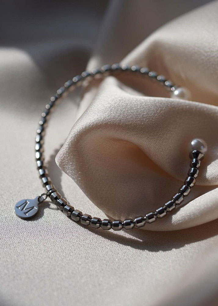Стальной жесткий браслет Majorica 16456.01.A.B58.000.1 с жемчугом