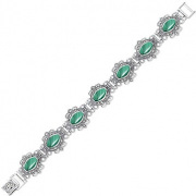 Фото «Серебряный браслет цепь Марказит BR010-malahit-mr с малахитами, марказитами Swarovski»