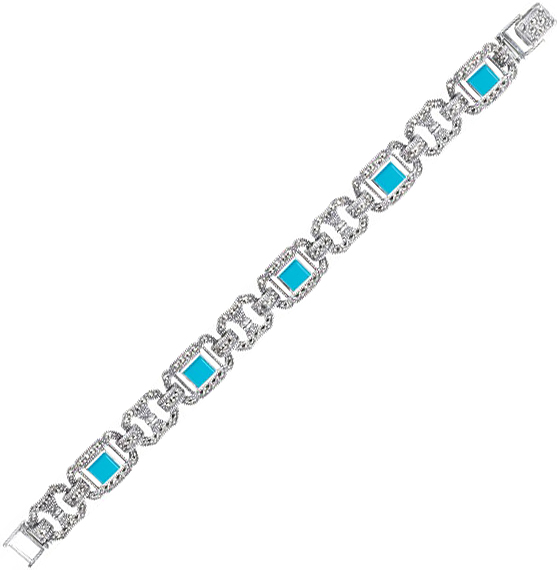 Фото «Серебряный браслет цепь Марказит BR047-birjuza-mr с бирюзой, марказитами Swarovski»