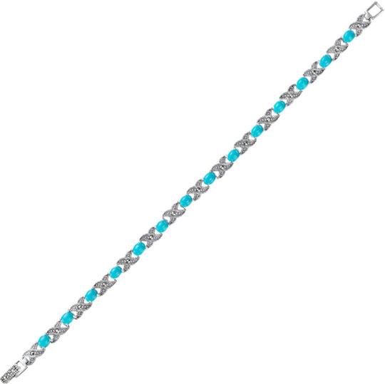 Серебряный браслет цепь Марказит BR149-birjuza-mr с марказитами, бирюзой