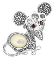 Фото «Серебряная брошь ''Мышка'' Марказит HB0050-perlamutr-mr с гранатами, перламутром, марказитами Swarovski»